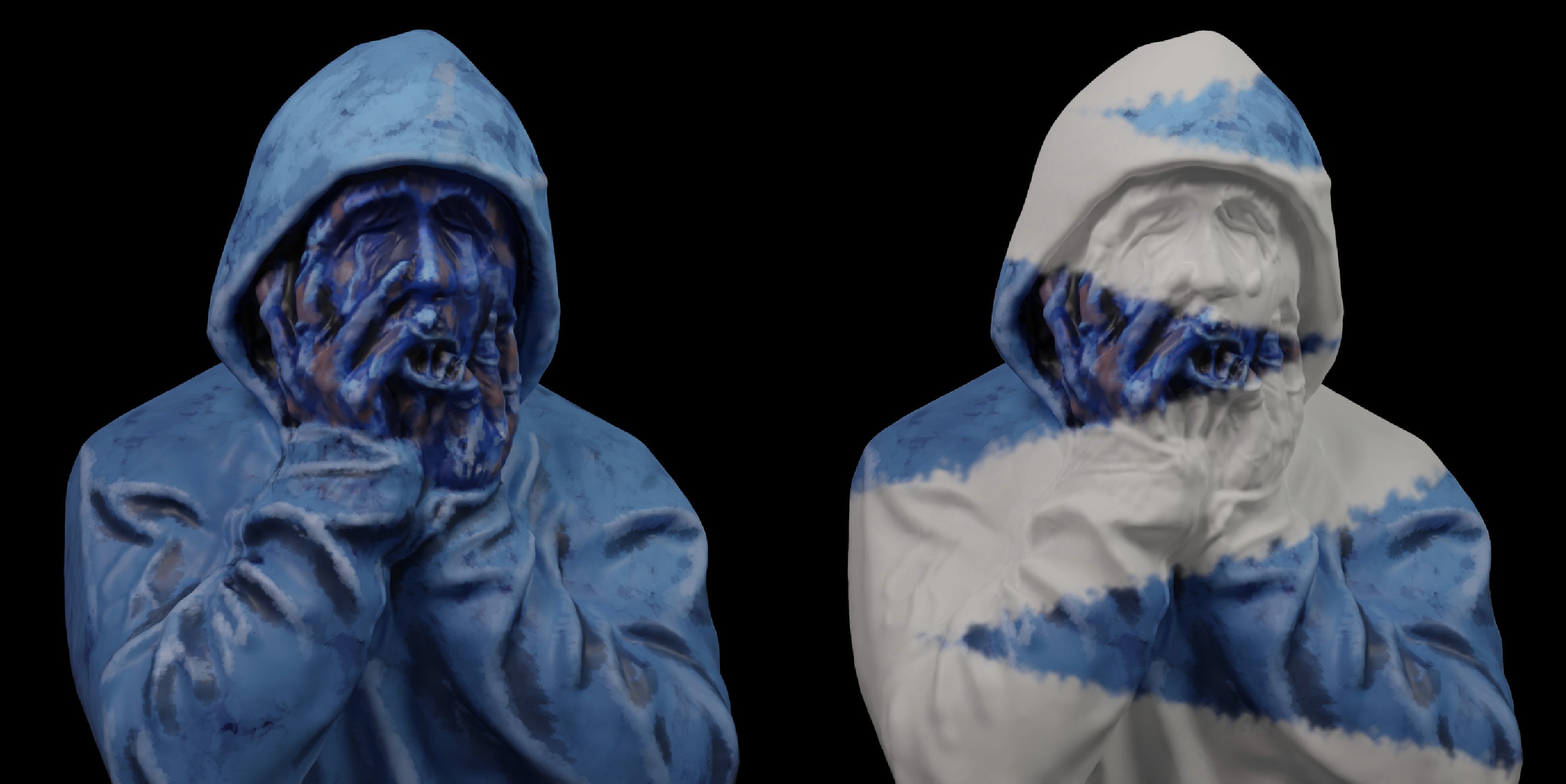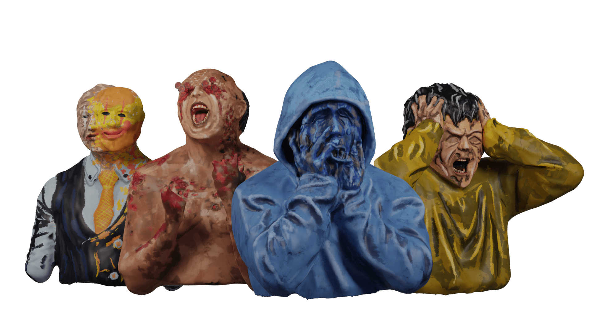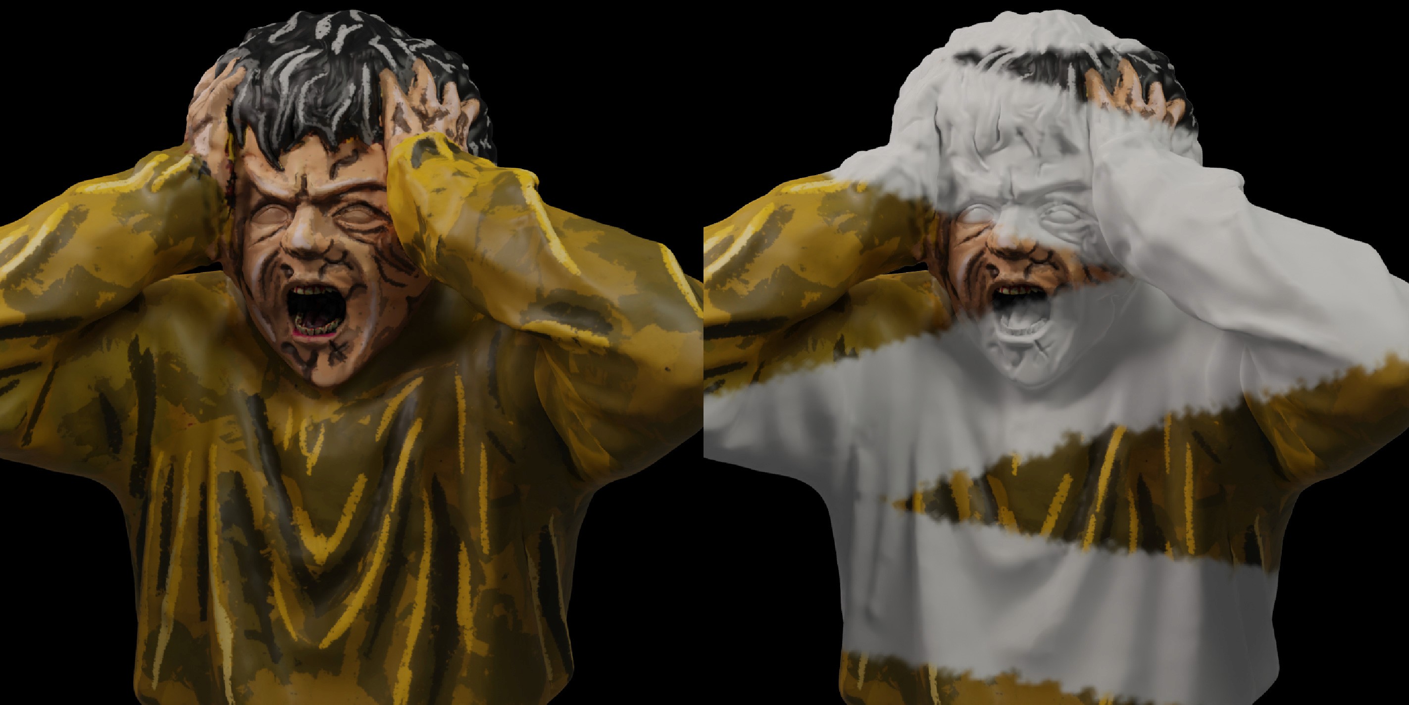 The interactive museum is a multimedia art exhibition. I created a digital sculpture in 3D and textured it in Blender. Each brushstroke of the texture was carefully crafted to simulate a hand-painted sculpture, giving it an artisanal and expressive aesthetic. El museo interactivo es una exposición de arte multimedia. Creé una escultura digital en 3D y la texturicé en Blender. Cada pincelada de la textura fue cuidadosamente elaborada para simular una escultura pintada a mano, otorgándole una estética artesanal y expresiva.