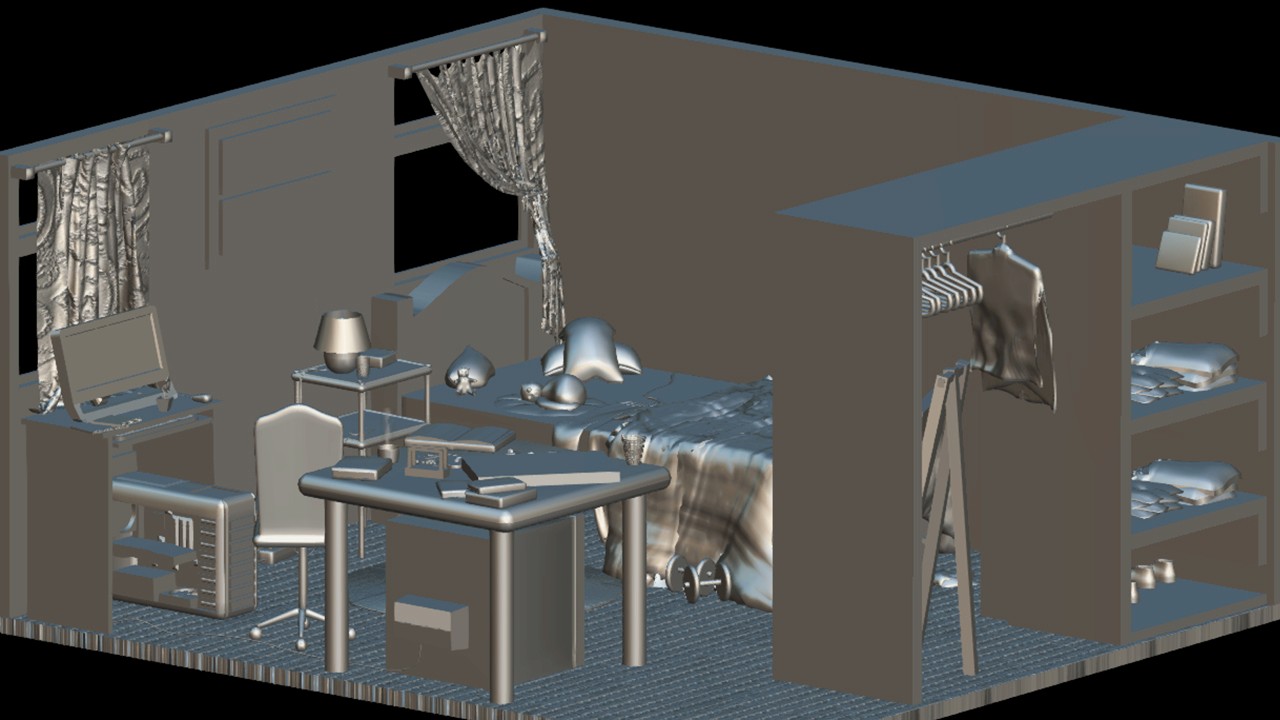 Creation of complete 3D environments, including modeling and texturing of elements, as well as composition and animation of environmental components. Creación de escenarios 3D completos, incluyendo el modelado y texturizado de los elementos, así como la composición y animación de los componentes del entorno.